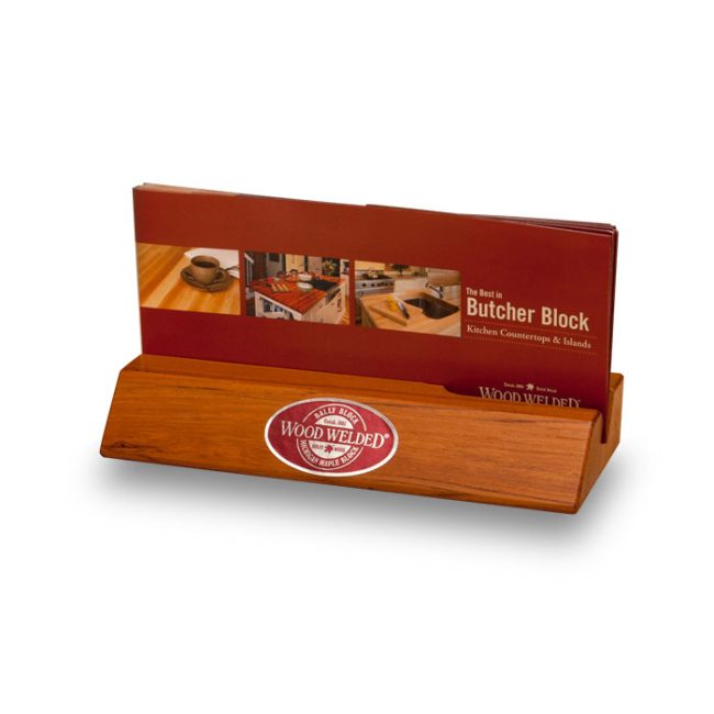The “Take With” brochures are a quick-reference guide for residential butcher block countertops and islands in a compact, 4″ x 9″, standard rack card size. The handsome display unit is machined of butcher block and accommodates approximately ten brochures for convenient display. Compact and perfect for placement on a showroom top. Details Brochures: 4″ x 9″ horizontal…